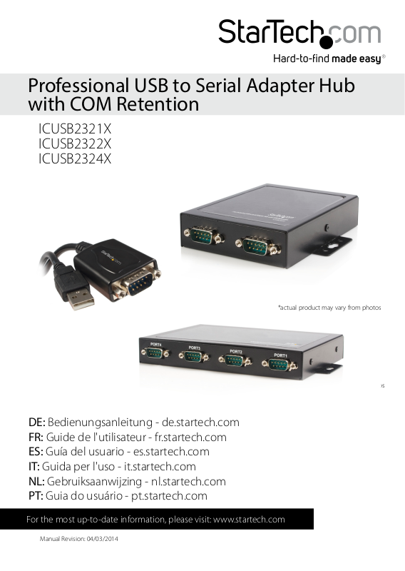Thank you for purchasing a StarTech.com Professional USB to RS-232 Serial Adapter.