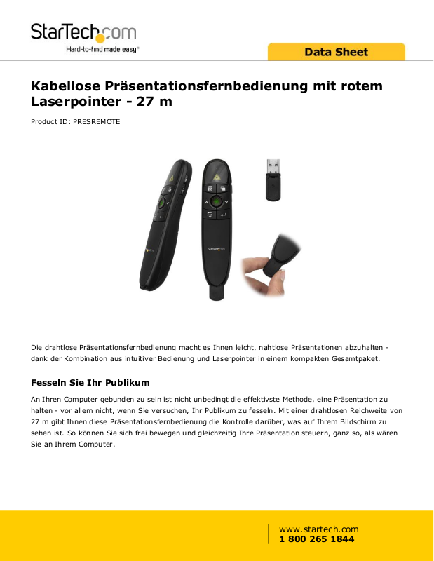 Das Modell PRESREMOTE wird von StarTech.com mit einer 2-Jahres-Garantie sowie lebenslangem