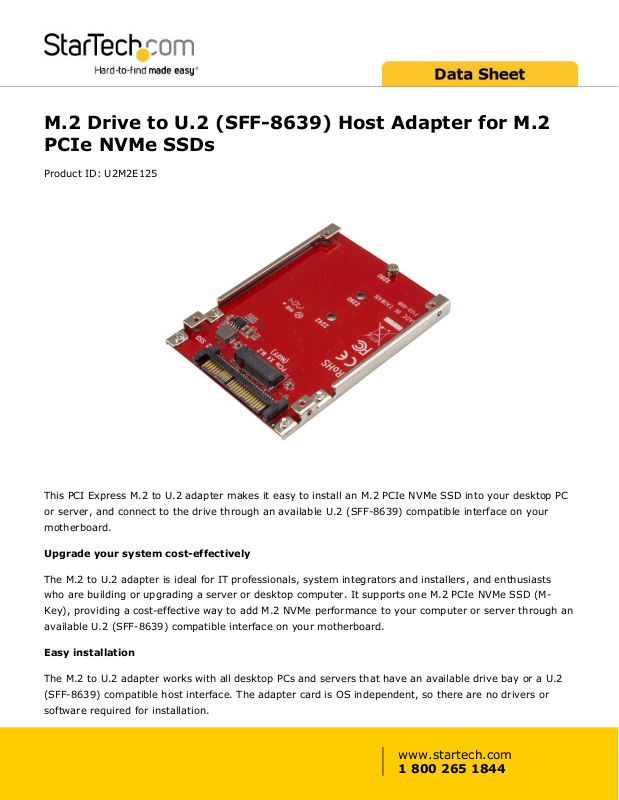 What's in the Box Included in Package 1 - M.2 drive to U.2 adapter