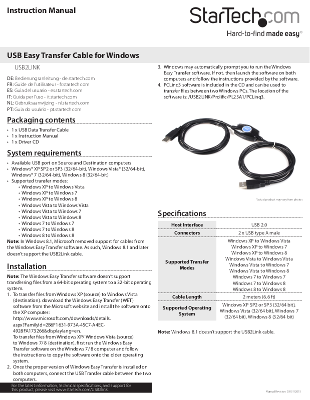the Windows Easy Transfer software. As such, Windows 8.1 and later