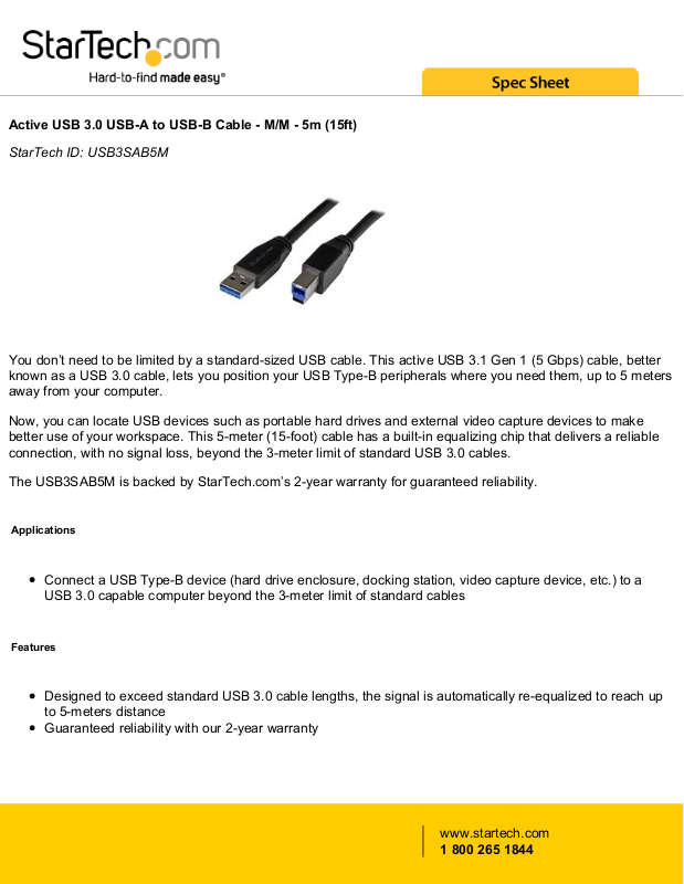 The USB3SAB5M is backed by StarTech.com’s 2-year warranty for guaranteed reliability.