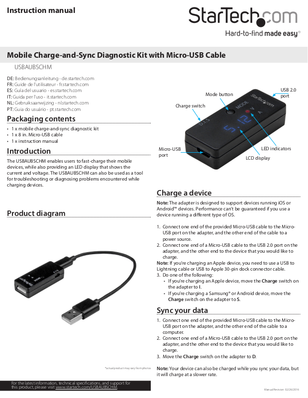 Mobile Charge-and-Sync Diagnostic Kit with Micro-USB Cable