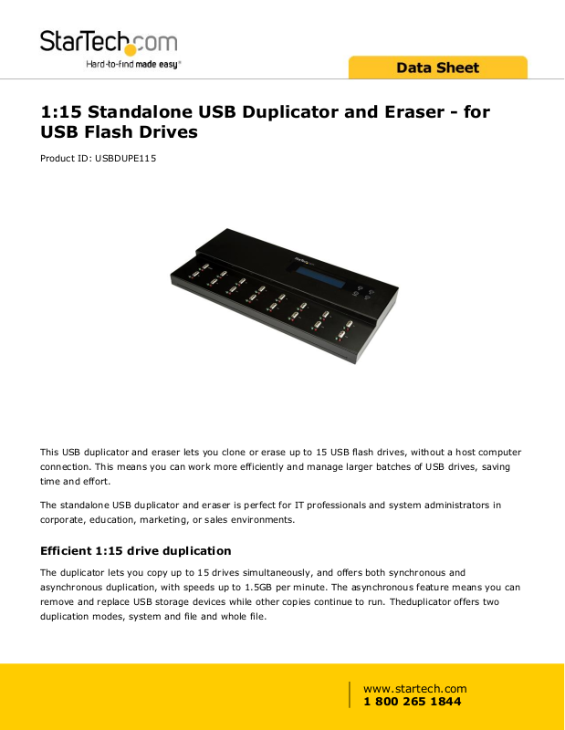 • Duplicate or erase up to 15 USB 3.0, USB 2.0 and USB 1.1 flash