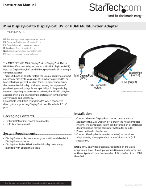 The MDP2DPDVHD Mini-DisplayPort to DisplayPort, DVI or