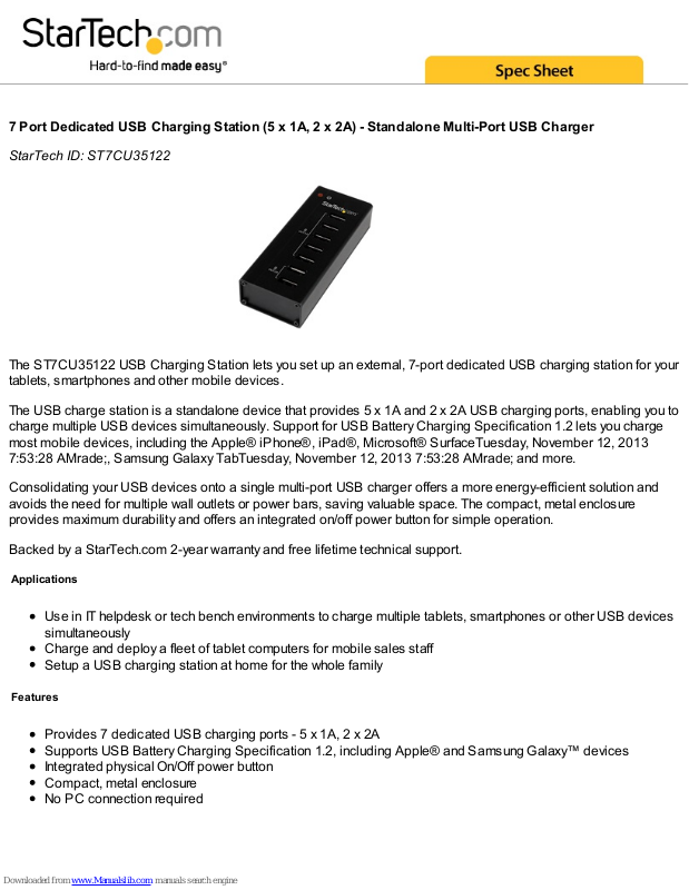 The ST7CU35122 USB Charging Station lets you set up an external, 7-port dedicated USB charging station for your