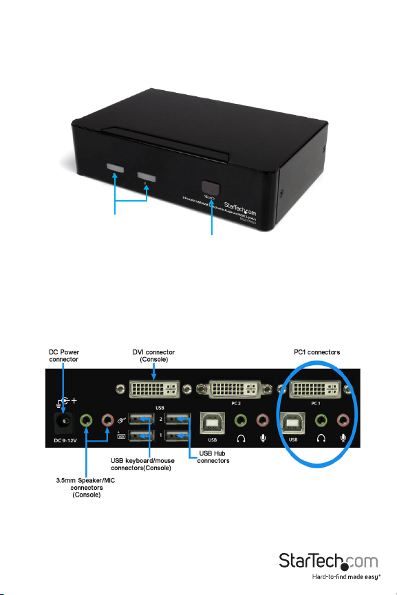 card, to one of the KVM’s PC ports (i.e. PC1). A dedicated DVI, USB and audio 4-in-1 KVM