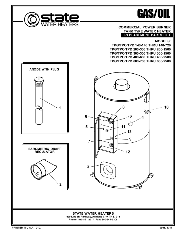 TPG/TPO/TPD 600-720 thru 600-2500 ....................................... 6.................................................. 06900229