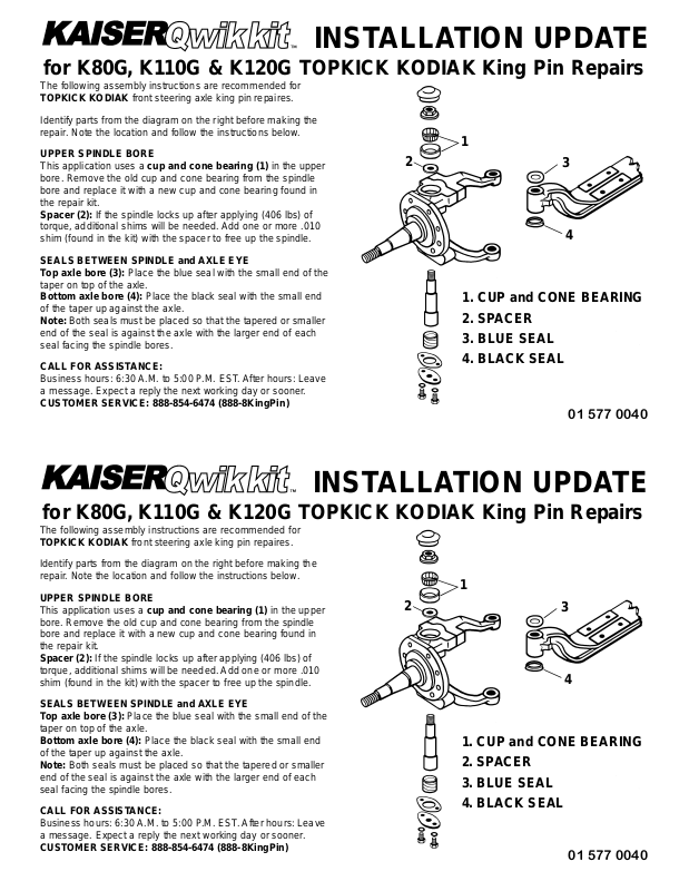 for K80G, K110G & K120G TOPKICK KODIAK King Pin Repairs