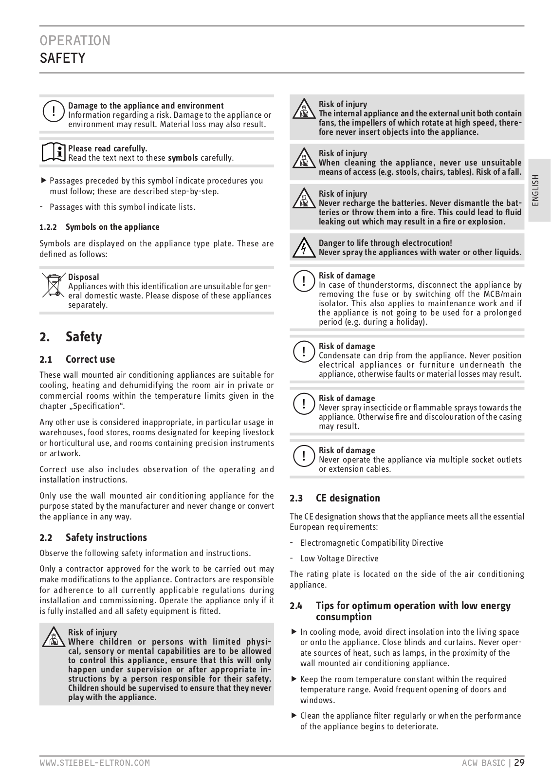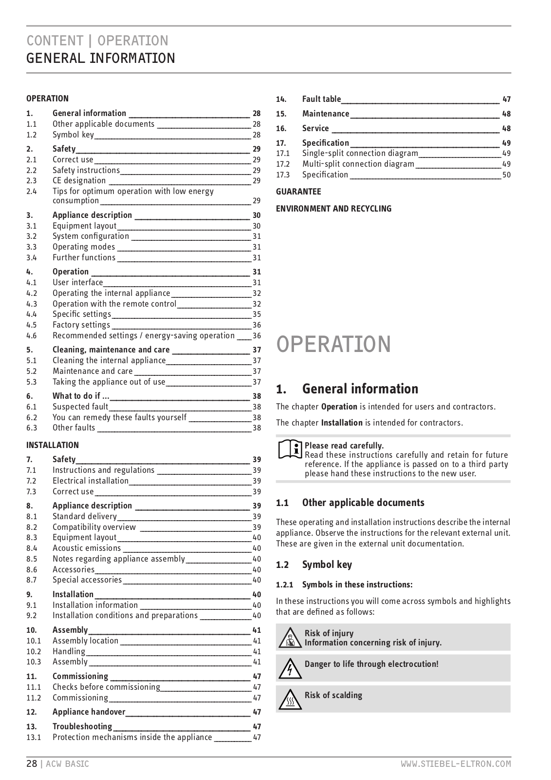 STIEBEL ELTRON ACW 25 I BASIC, ACW 35 I BASIC, ACW 50 I BASIC, ACW 25 MI BASIC, ACW 35 MI BASIC Operation And Installation