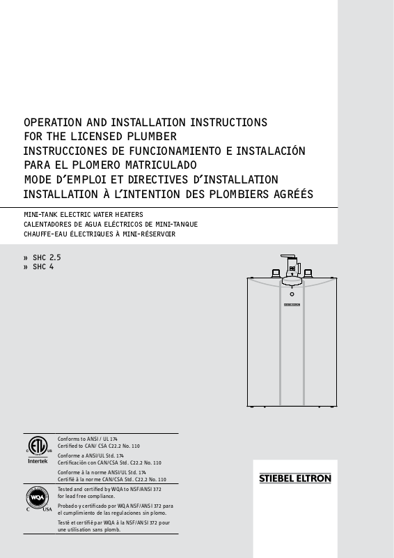 2 | SHC 2.5 / SHC 4 www.stiebel-eltron-usa.com