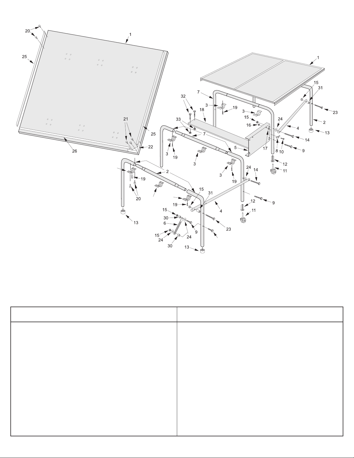 larger and wider than the U Support. The Uleg should be installed on the end of the table