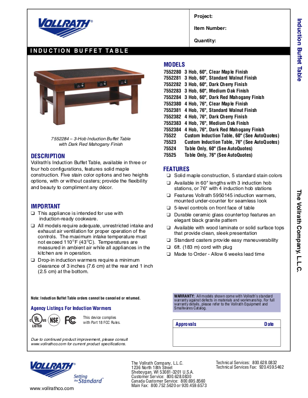 75522 Custom Induction Table, 60" (See AutoQuotes) 75524 Table Only, 60" (See AutoQuote)