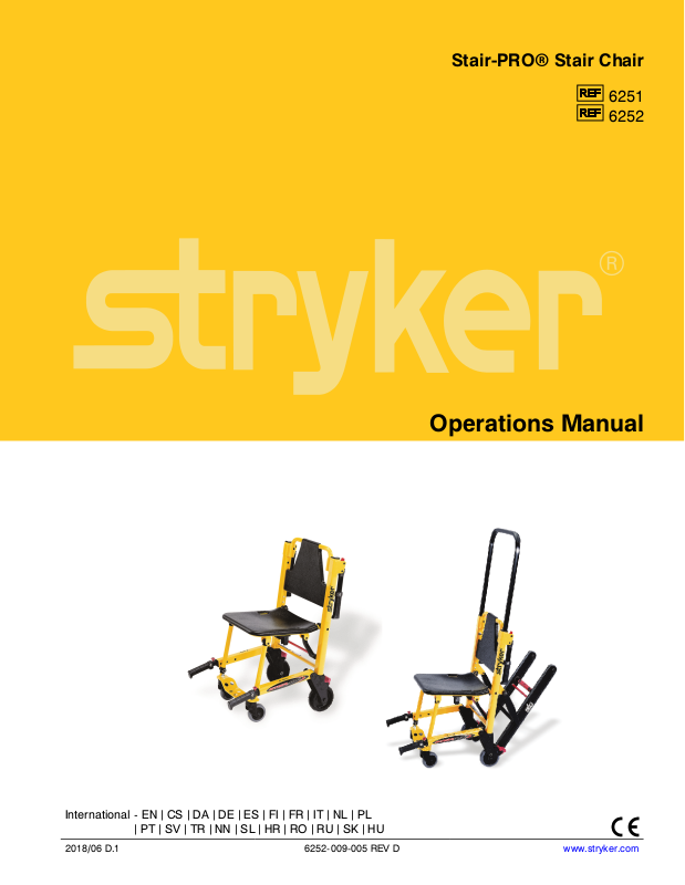 The Model 6251 and Model 6252 Stair-PRO stair chair is a manual transport device. The product transports the body of