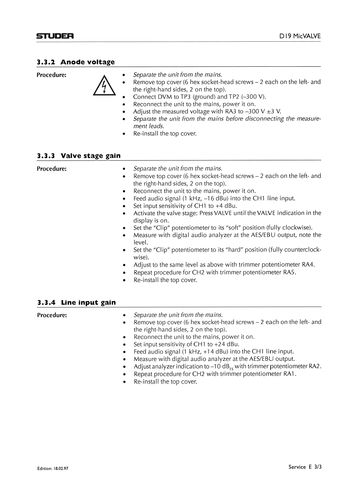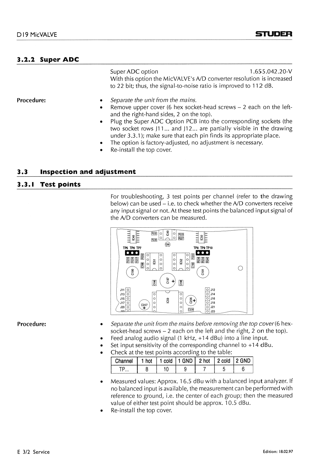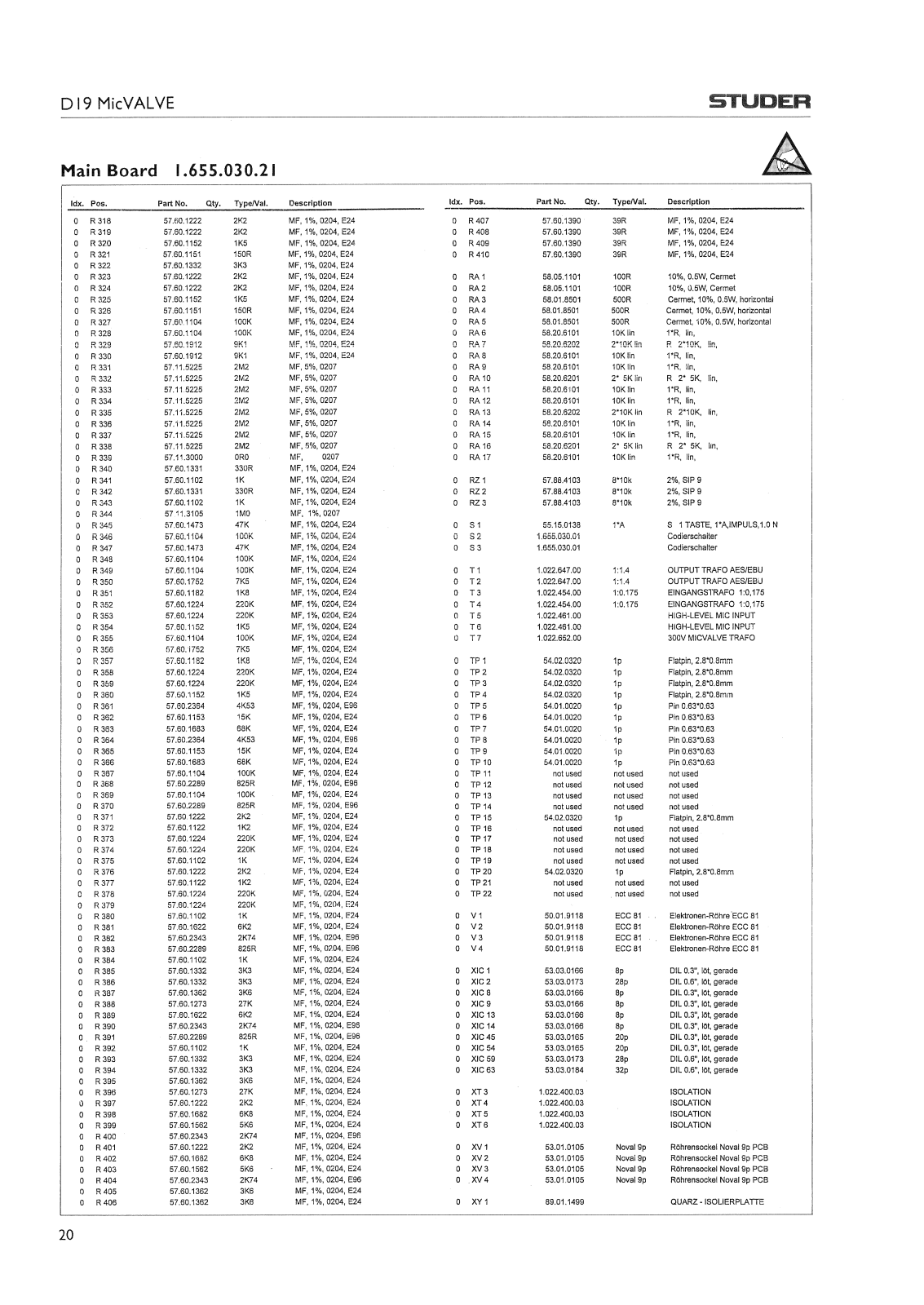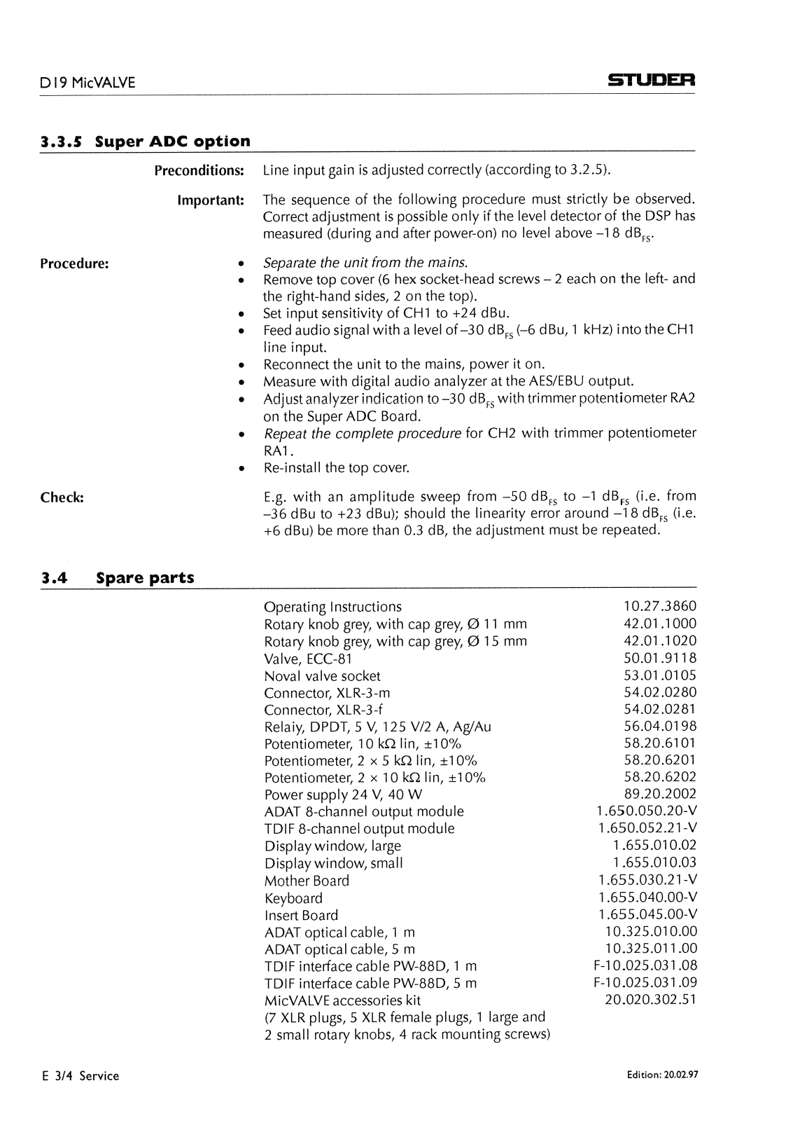 Studer D-19 Mic VALVE Service manual