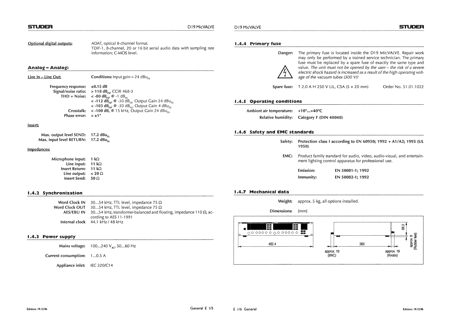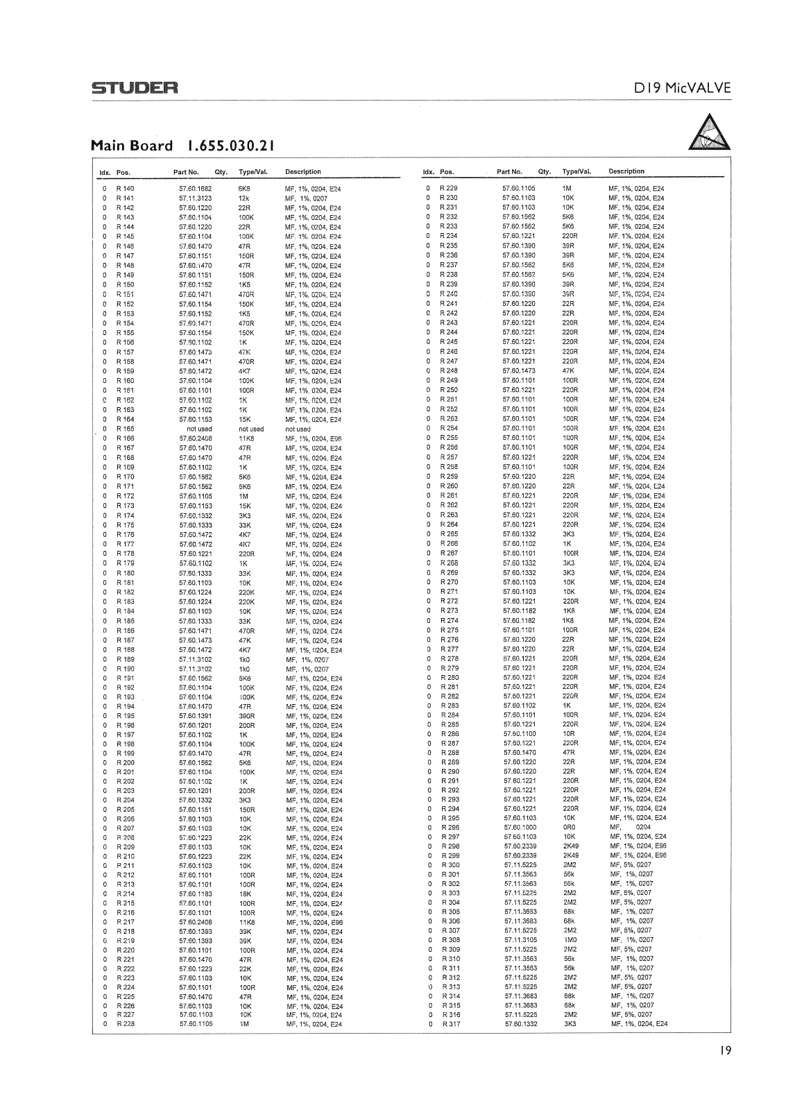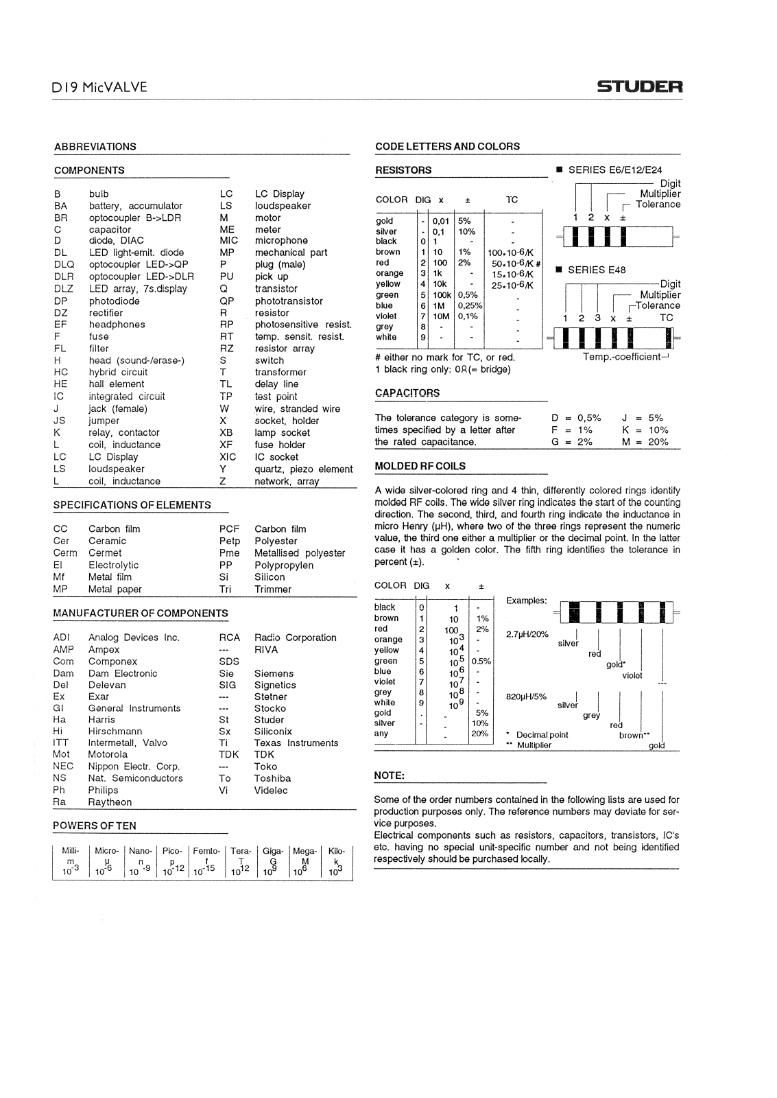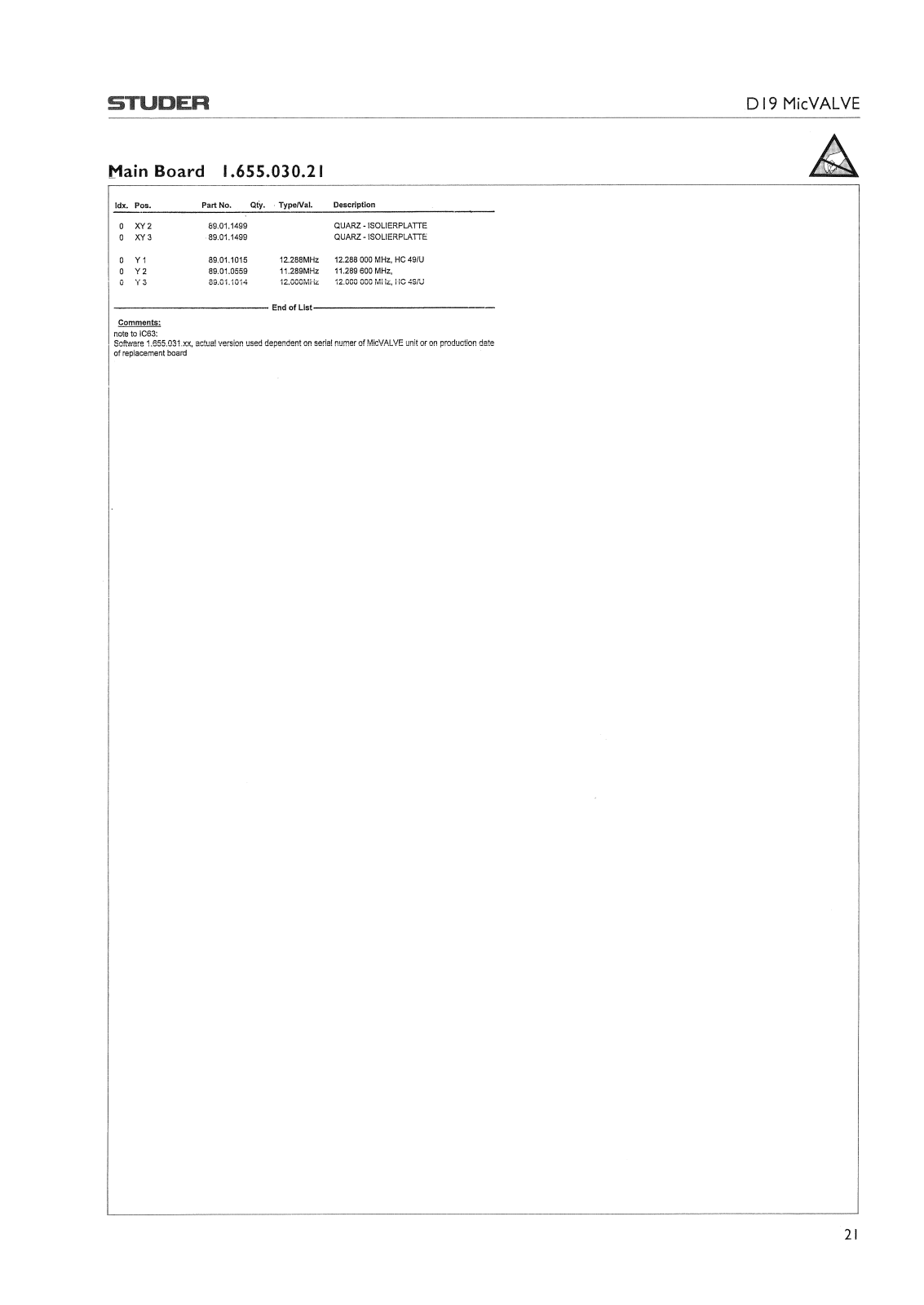 Studer D-19 Mic VALVE Service manual