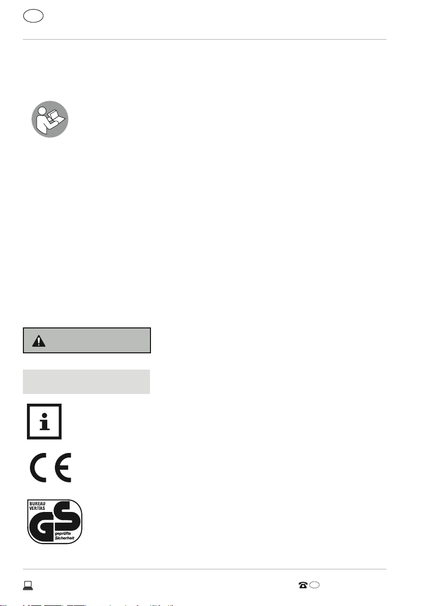 Lesen Sie die Bedienungsanleitung, insbesondere die Sicherheitshinweise, sorgfältig