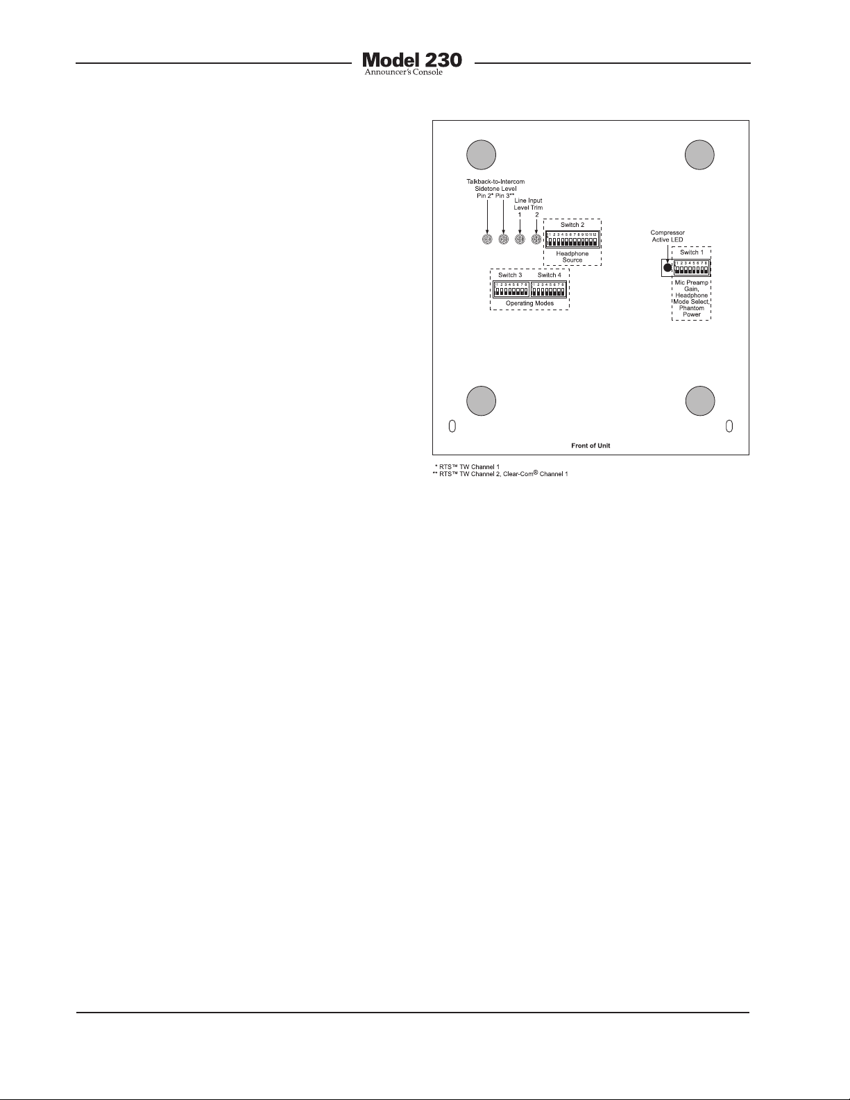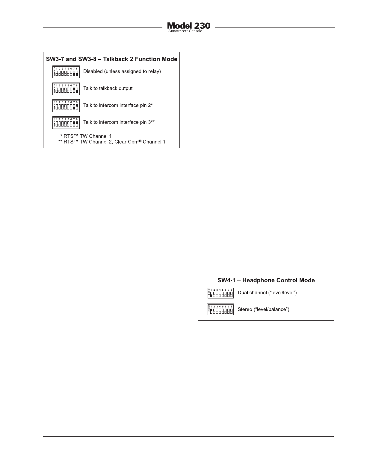 audio to be routed to one of three locations: intercom channel 1, intercom channel 2, or a line-level talkback output. The