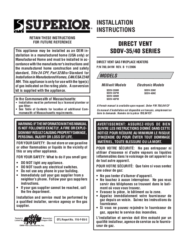This appliance may be installed as an OEM installation in a manufactured home (USA only) or