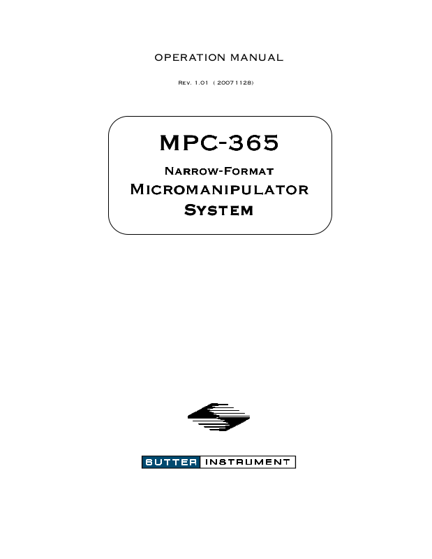 MPC365 NARROW-FORMAT MICROMANIPULATOR SYSTEM OPERATION MANUAL – REV. 1.01 (20071128)