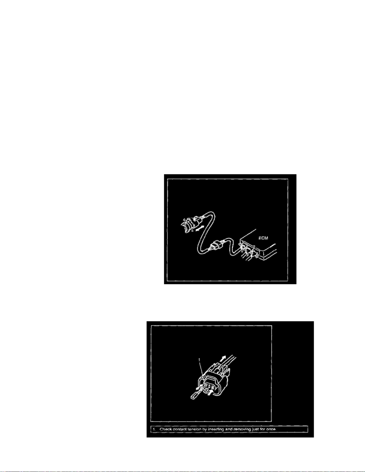 visually for poor contact (possibly caused by dirt, corrosion, rust entry of foreign object, etc.). At the same time, check to make sure that eachterminal is locked in the connector fully.