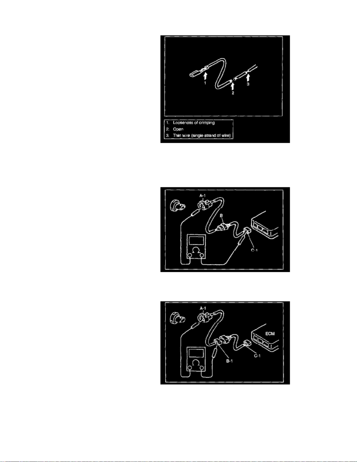 Poor terminal-to-wire connection.Check each wire harness in problem circuits for poor connection by shaking it by hand lightly. If any abnormal condition is found, repair orreplace.