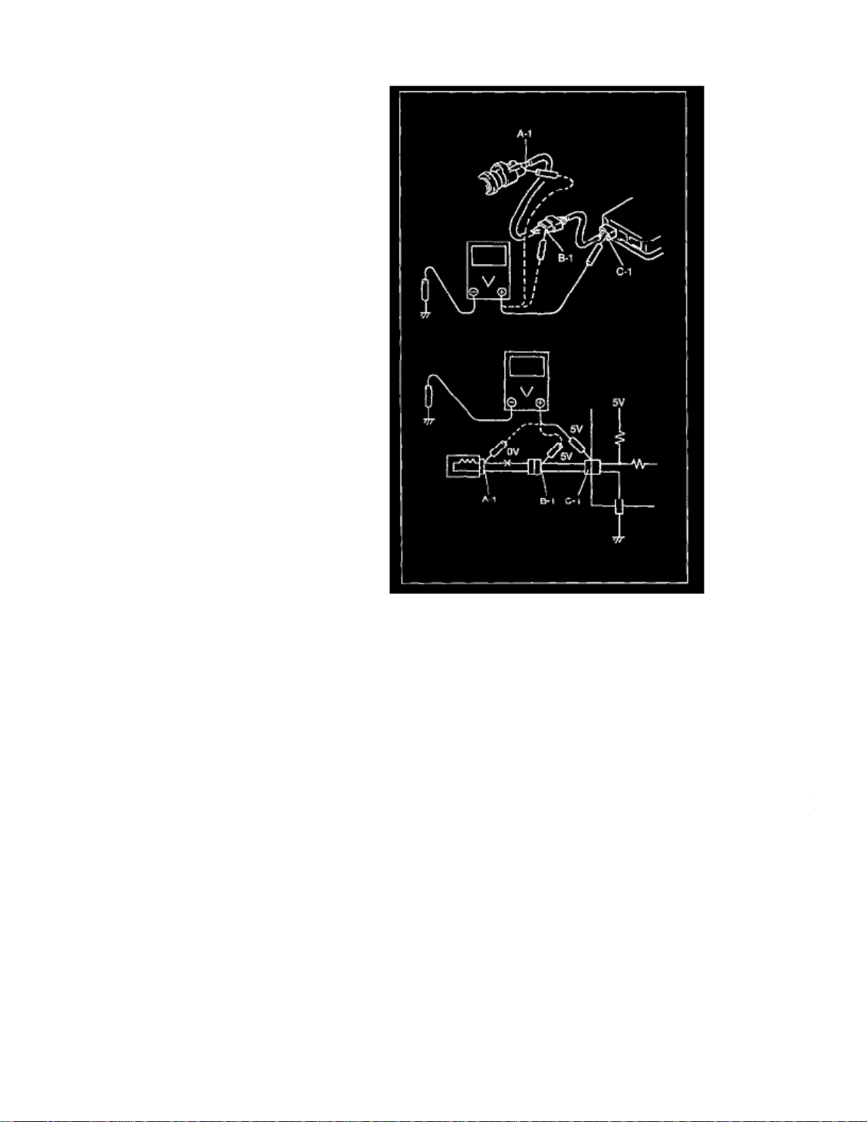 If no continuity is indicated, that means that the circuit is open between terminals A-1 and B-1. If continuity is indicated, there is an open circuitbetween terminals B-1 and C-1 or an abnormality in connector-B.