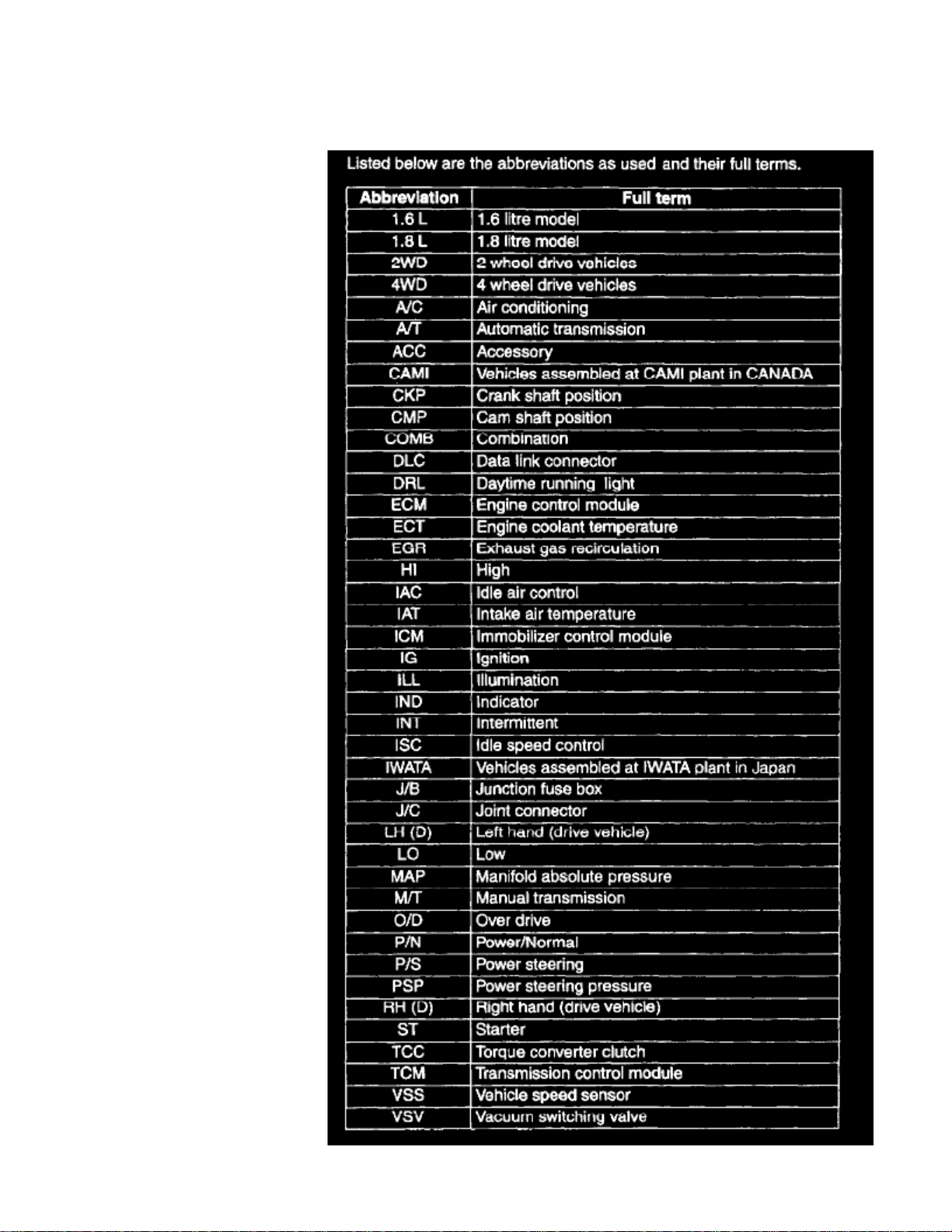 Ground point means the position where the negative harness among wiring harnesses is grounded. The diagram in ("GROUND POINT") shows suchground points. In ("SYSTEM CIRCUIT DIAGRAM"), there are many ground marks followed by black circles with numerical figures in them whichmean that the end of the harness with such black circle is grounded to some part of the vehicle.