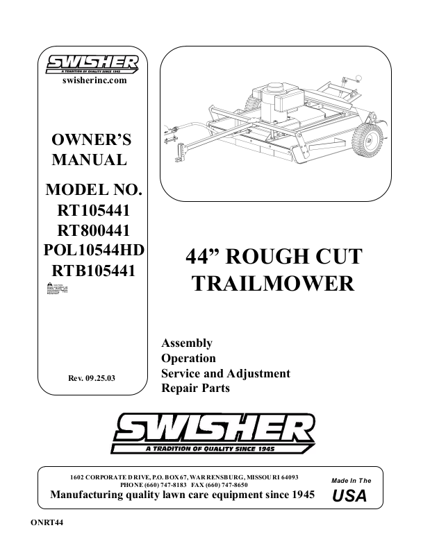 Swisher Mower & Machine Co. Inc. or your nearest Swisher