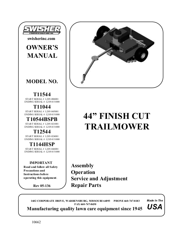 manufacturer and in no way is Swisher Mower Co., Inc. or its