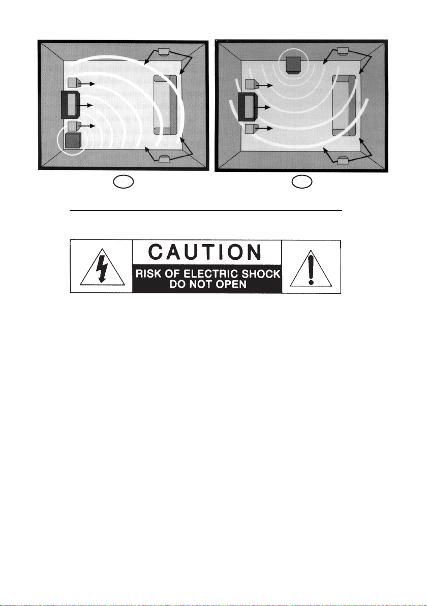 rule is to place the subwoofer near the satellite speakers. (See drawing B on page 8)