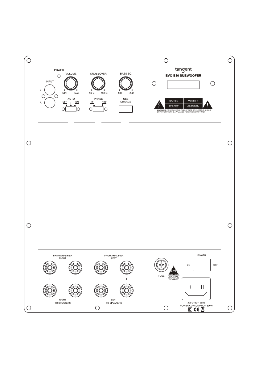 Venligst udpak din nye aktive Tangent subwoofer med forsigtighed. Hvis du har mulighed for at opbevare papkassen til eventuelle fremtidige forsendelser vil dette klart være at foretrække.
