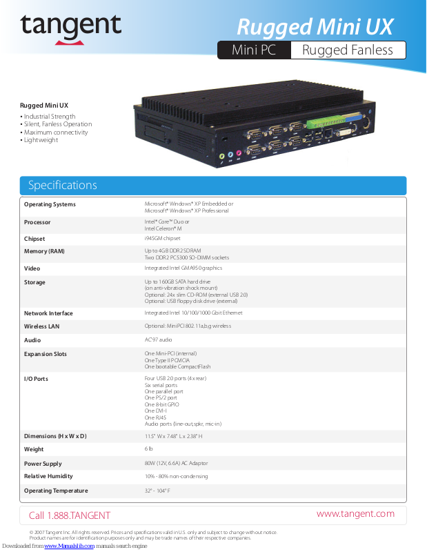© 2007 Tangent Inc. All rights reserved. Prices and specifications valid in U.S. only and subject to change without notice.