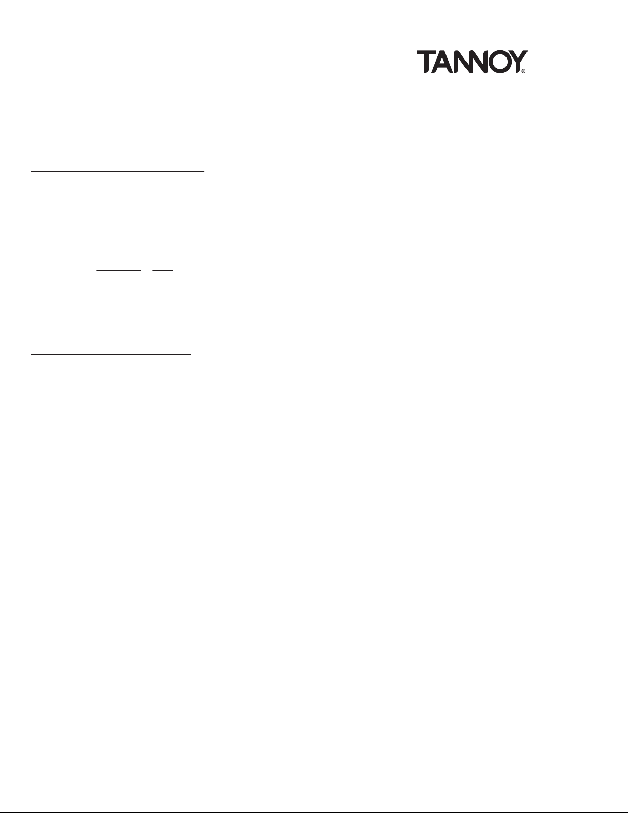 Tannoy United Kingdom T: +44 (0) 1236 420199 E: enquiries@tannoy.com