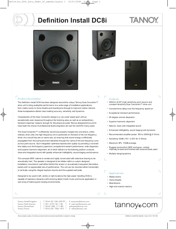 Tannoy adopts a policy of continuous improvement and product specification is subject to change