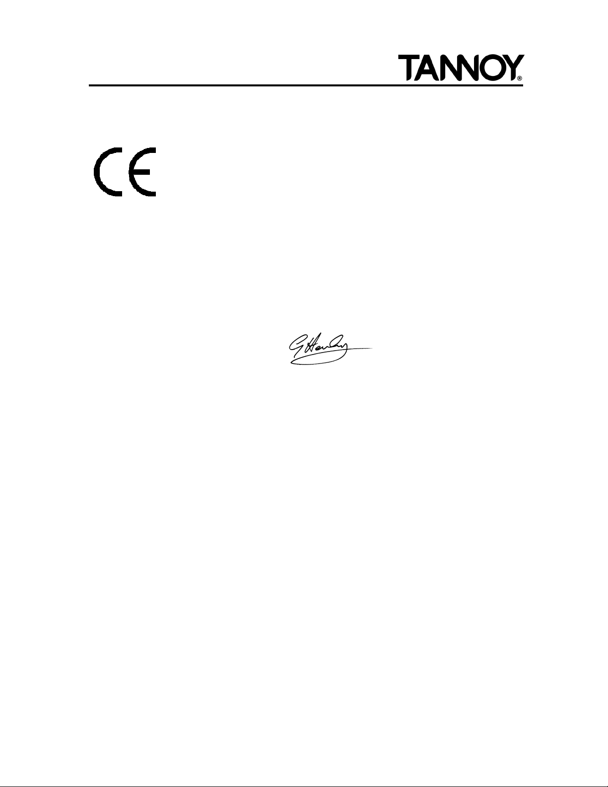 Tannoy United Kingdom T: +44 (0) 1236 420199 F: +44 (0) 1236 428230 E: enquiries@tannoy.com
