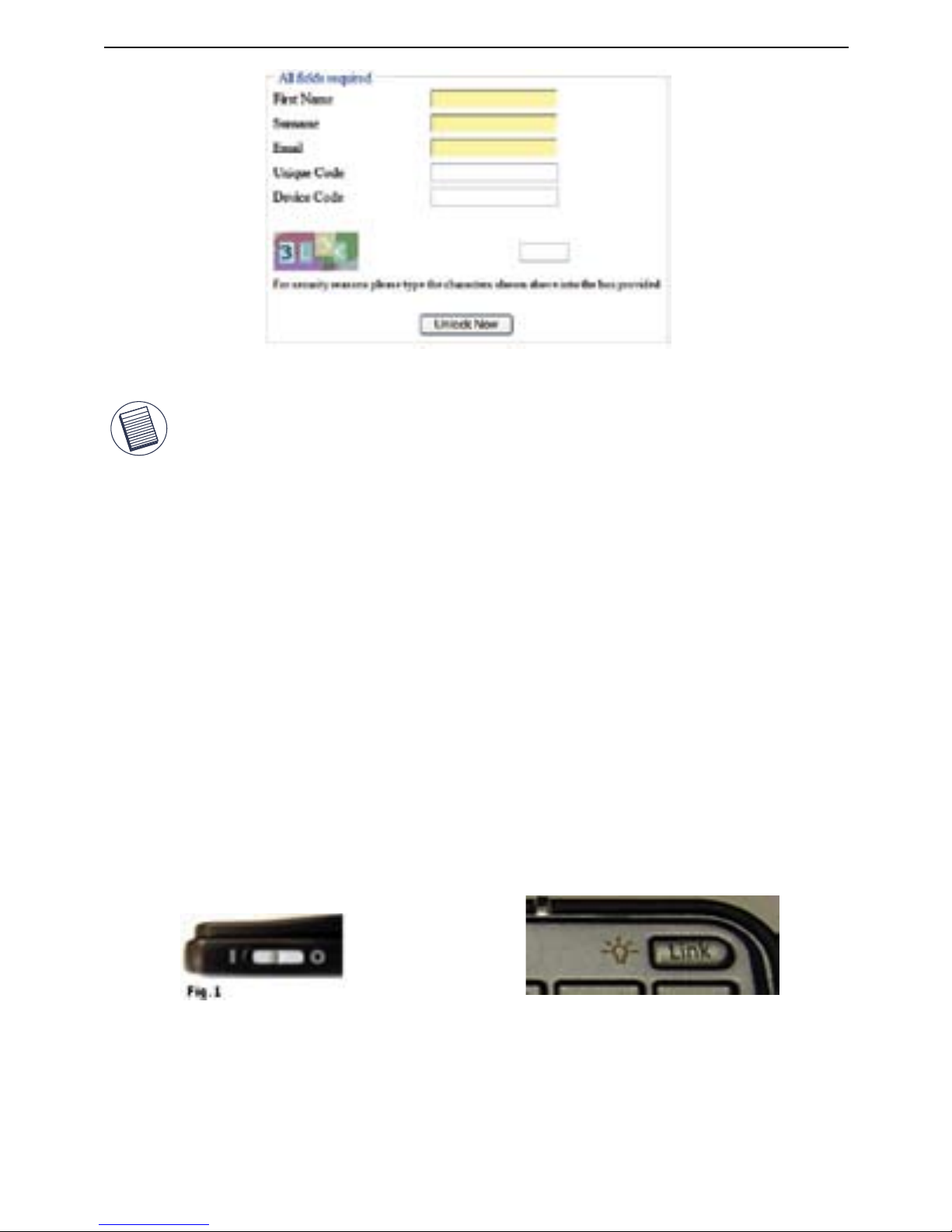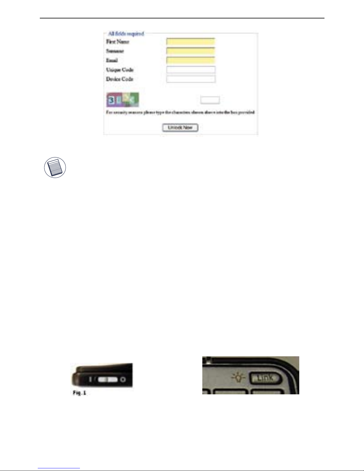 complete all fields before you will receive the unlock code.