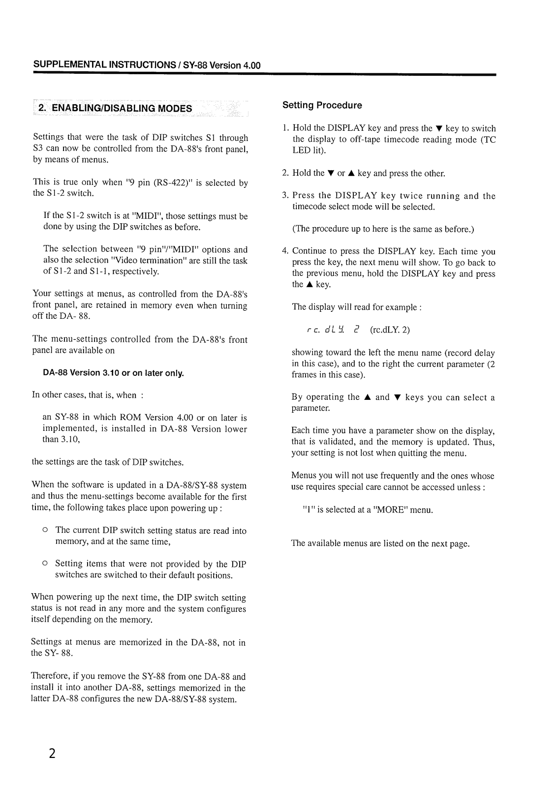 TASCAM SY-88 Ver. 4 Supplement Owners Manual (Update)
