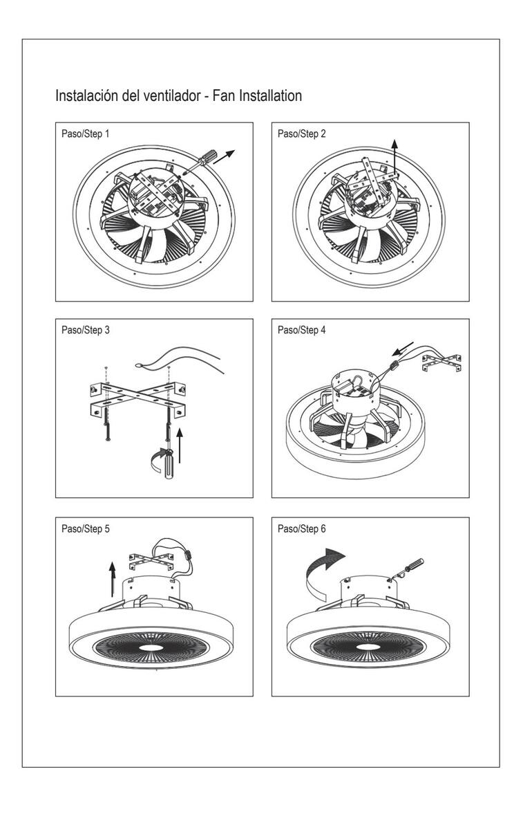 Ver "INSTALACIÓN DEL VENTILADOR" al principio del manual de instrucciones. (Pasos 1-6).