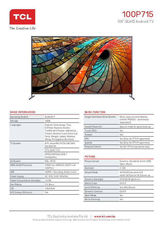TCL Electronics Australia Pty Ltd | www.tcl.com/au