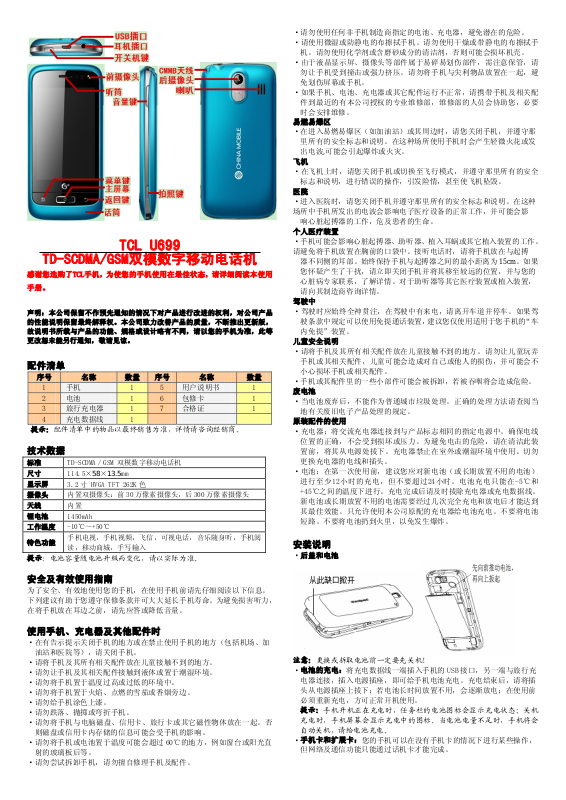 感谢您选购了TCL手机,为使您的手机使用在最佳状态,请详细阅读本使用