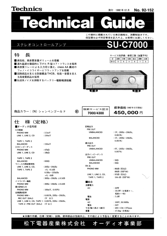 Technics SUC-7000 Service manual