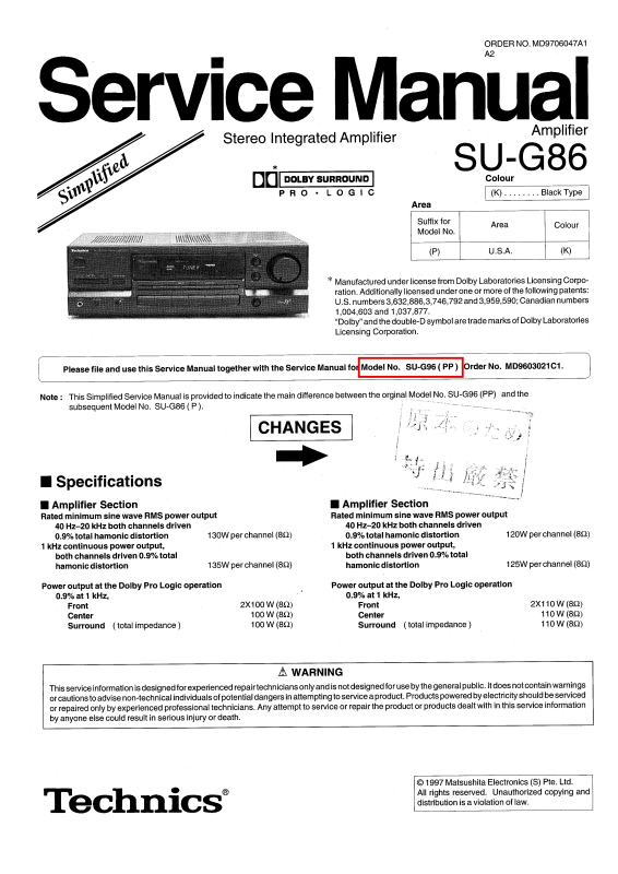 Technics SUG-86 Service manual