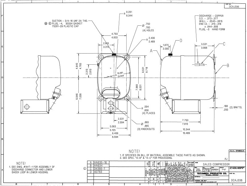 Tecumseh AJA2419YXA, AJA2419ZXA, AJA2419ZXC, AJA2425AXA, AJA2419ZXD, AJA2425AXD, AJA2425ZXA, AJA2425ZXD, AJA7441AXA, AJA7441AXD Drawing Data