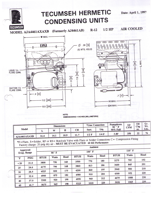 Tecumseh AJA4461AXAXB Performance Data Sheet