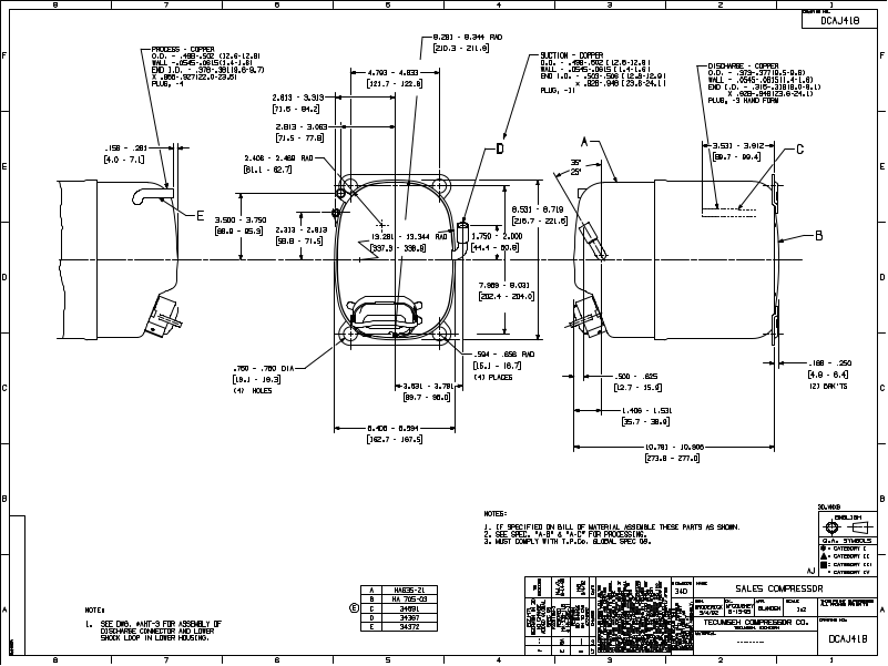 Tecumseh AJA9484EXD, AJB2433ZXD Drawing Data