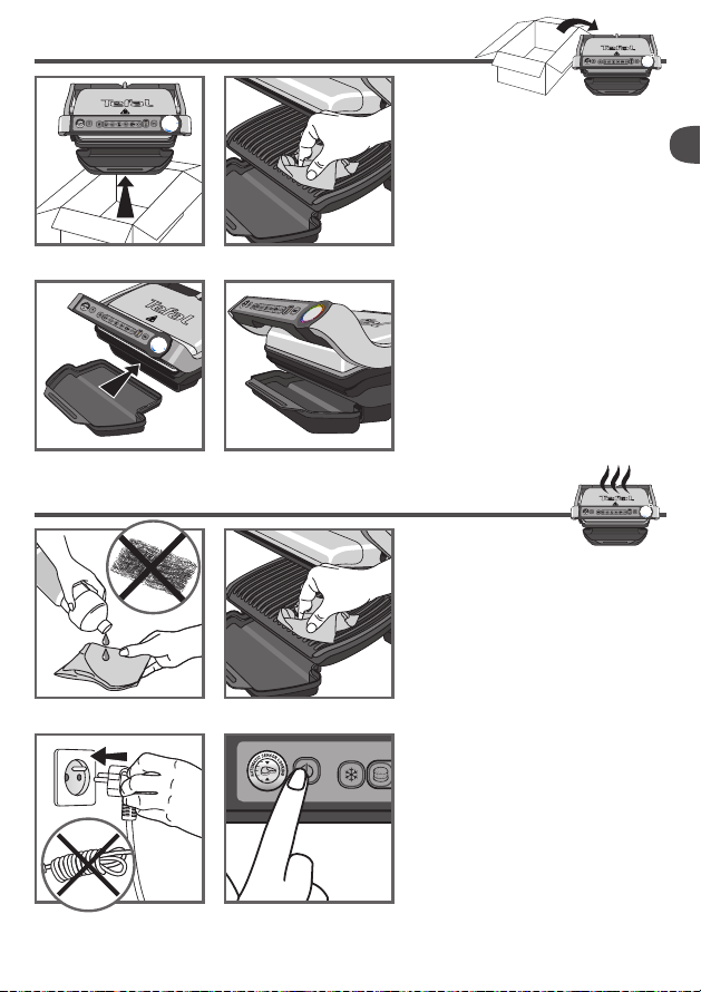 • Before firs t use, wash the pla tes (see paragraph 5), pour a little cooking oil onto the plates and wipe with a soft cloth