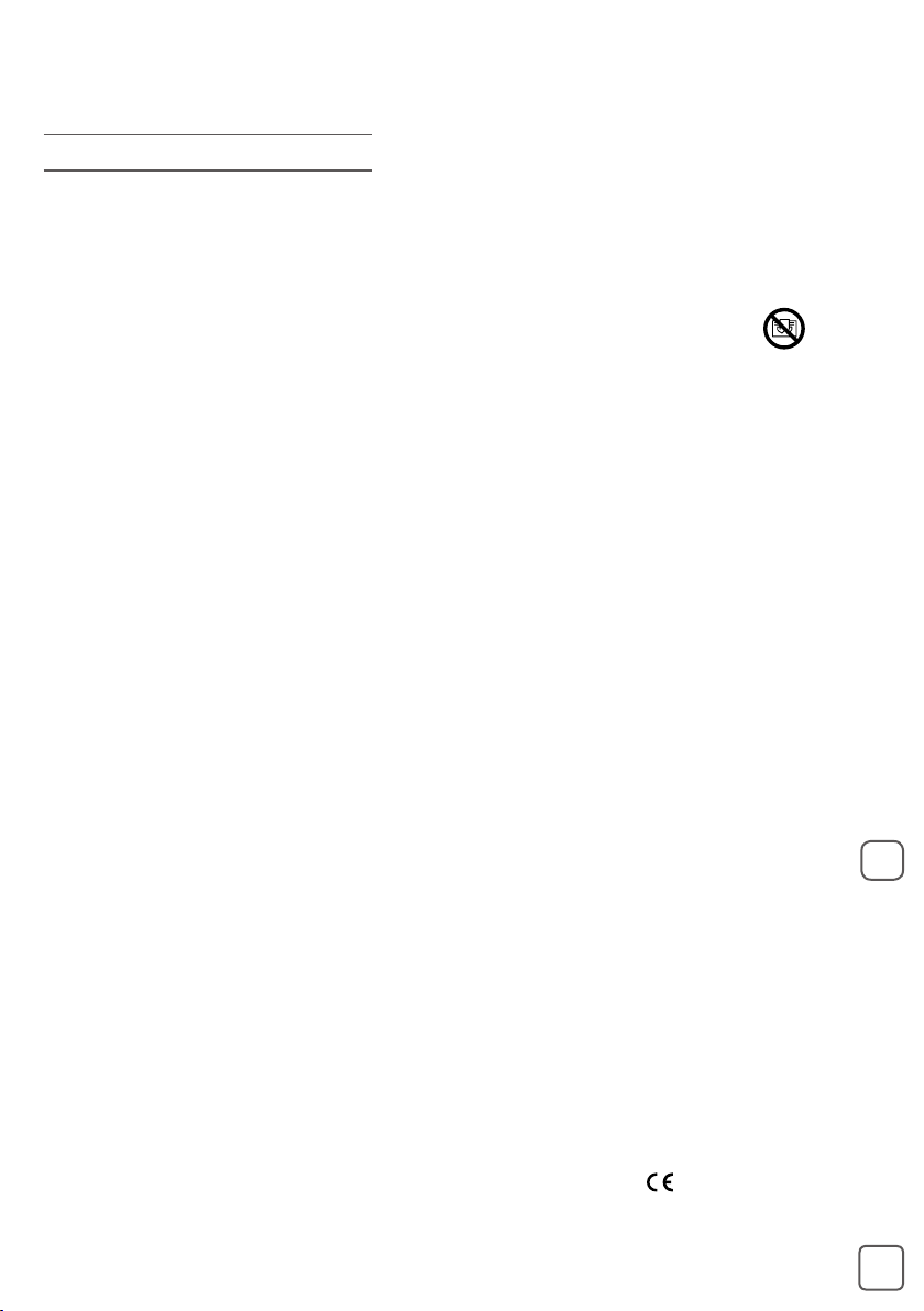 • Cet appareil est destiné à un usage domestique uniquement. En cas d’utilisation professionnelle, non appropriée ou non conforme aux instructions, le fabricant décline toute responsabilité et la garantie sera annulée.