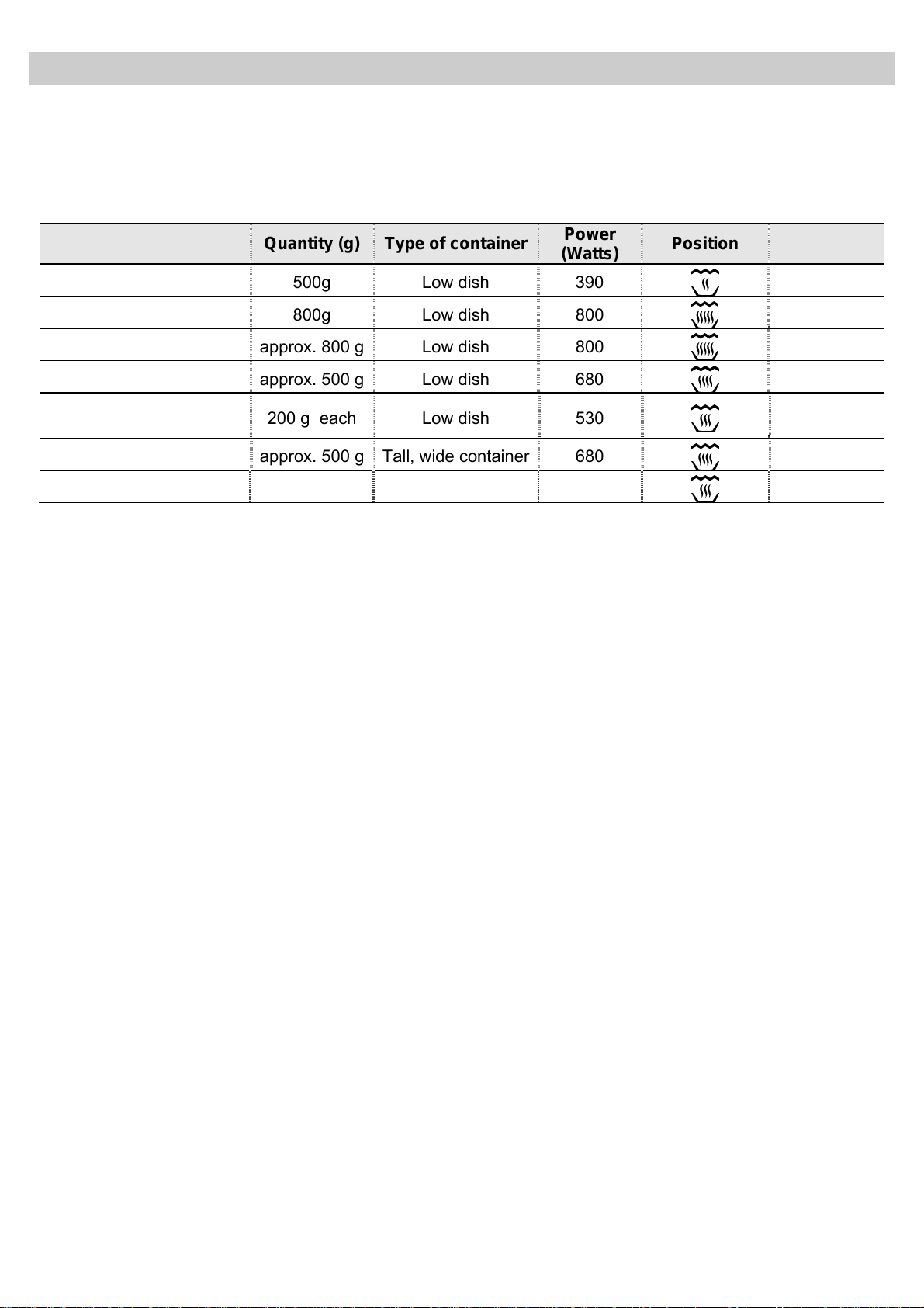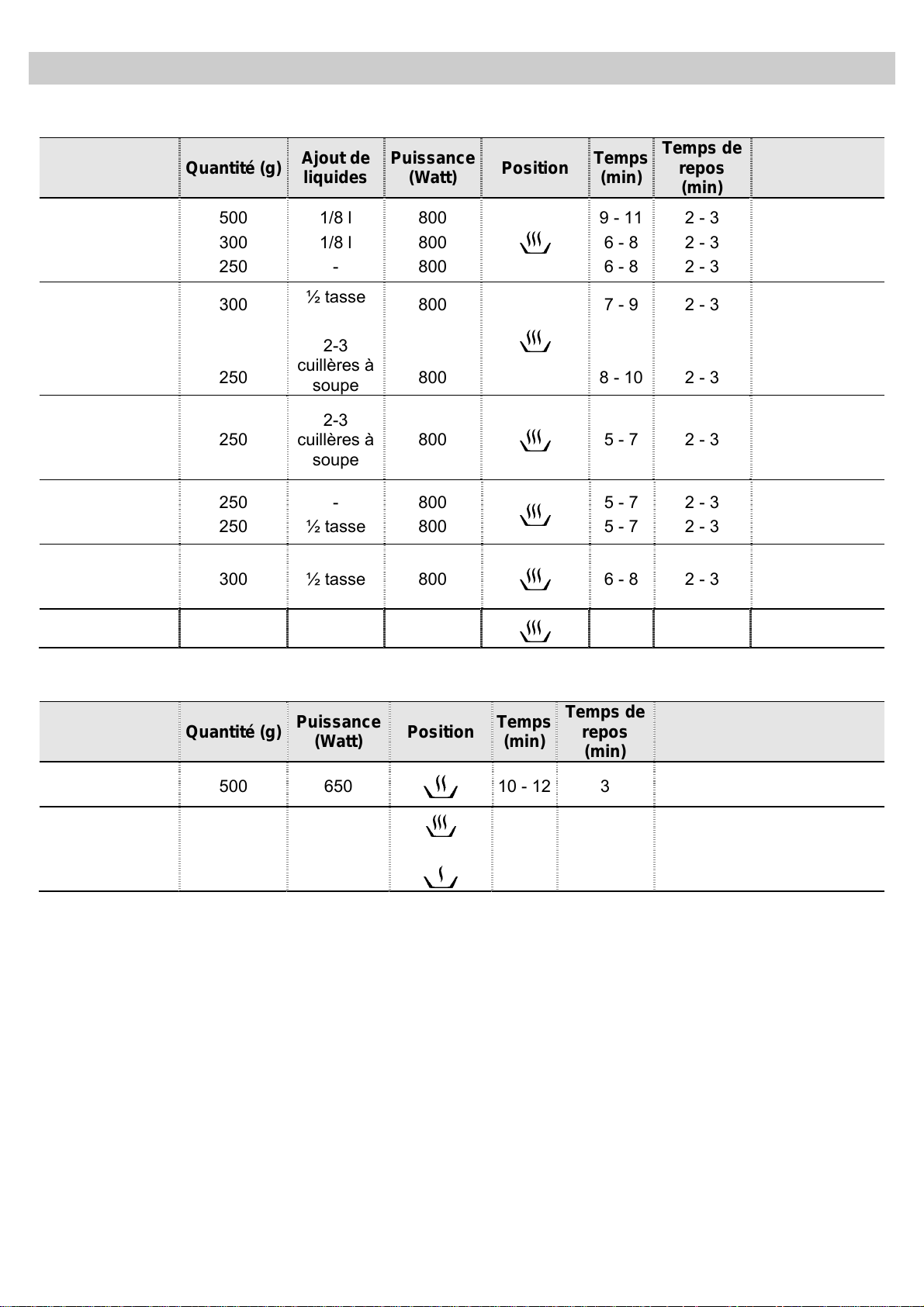 Symbole Description Puissance Aliments
