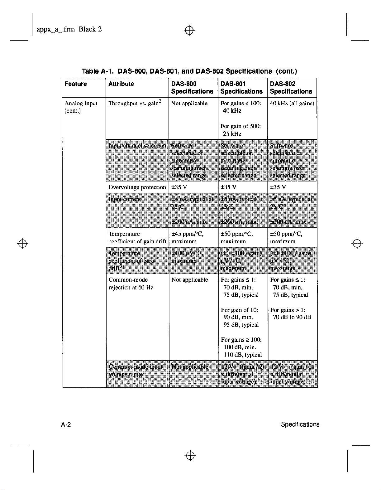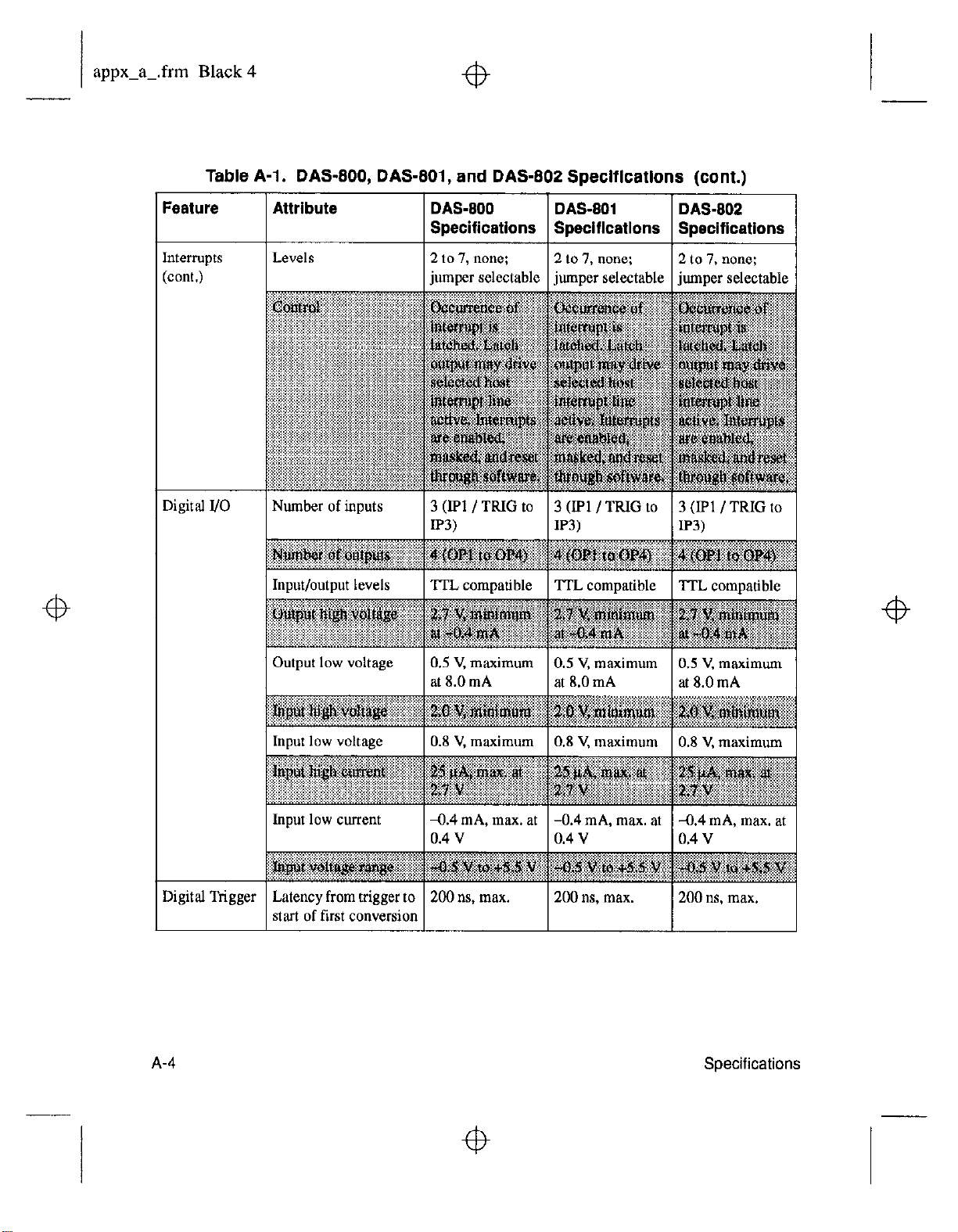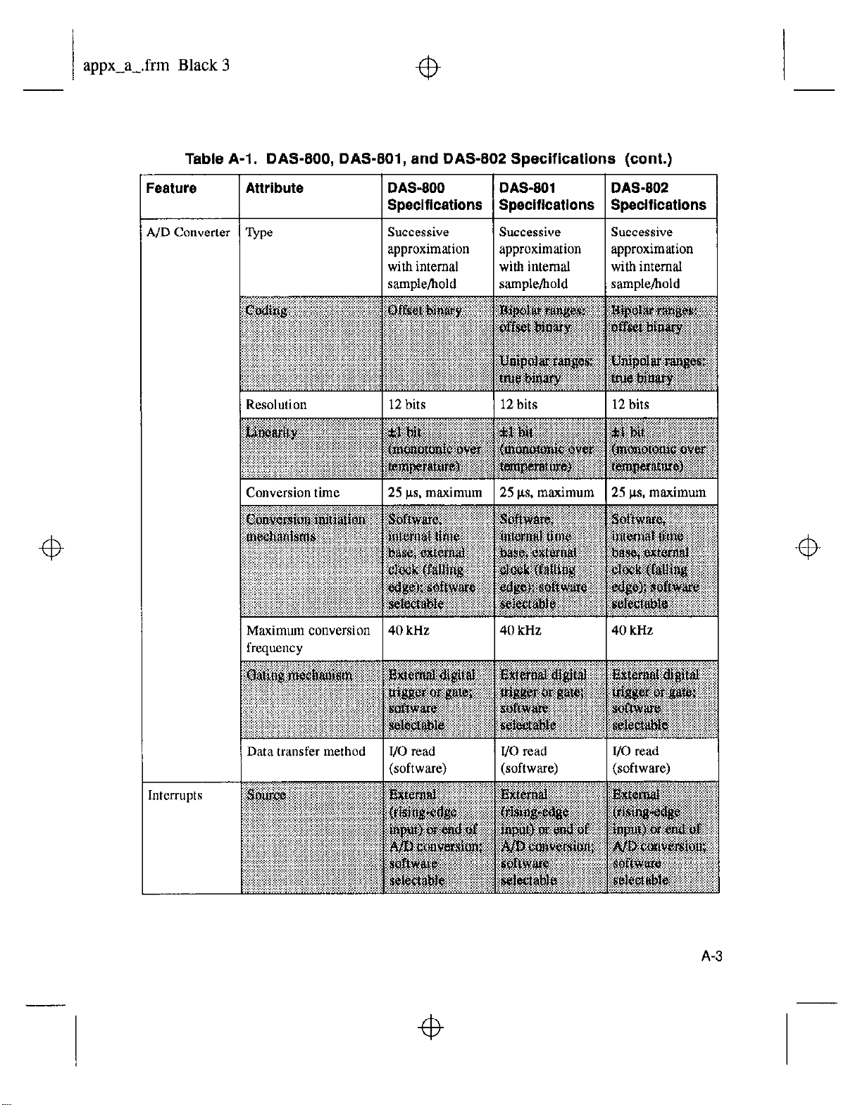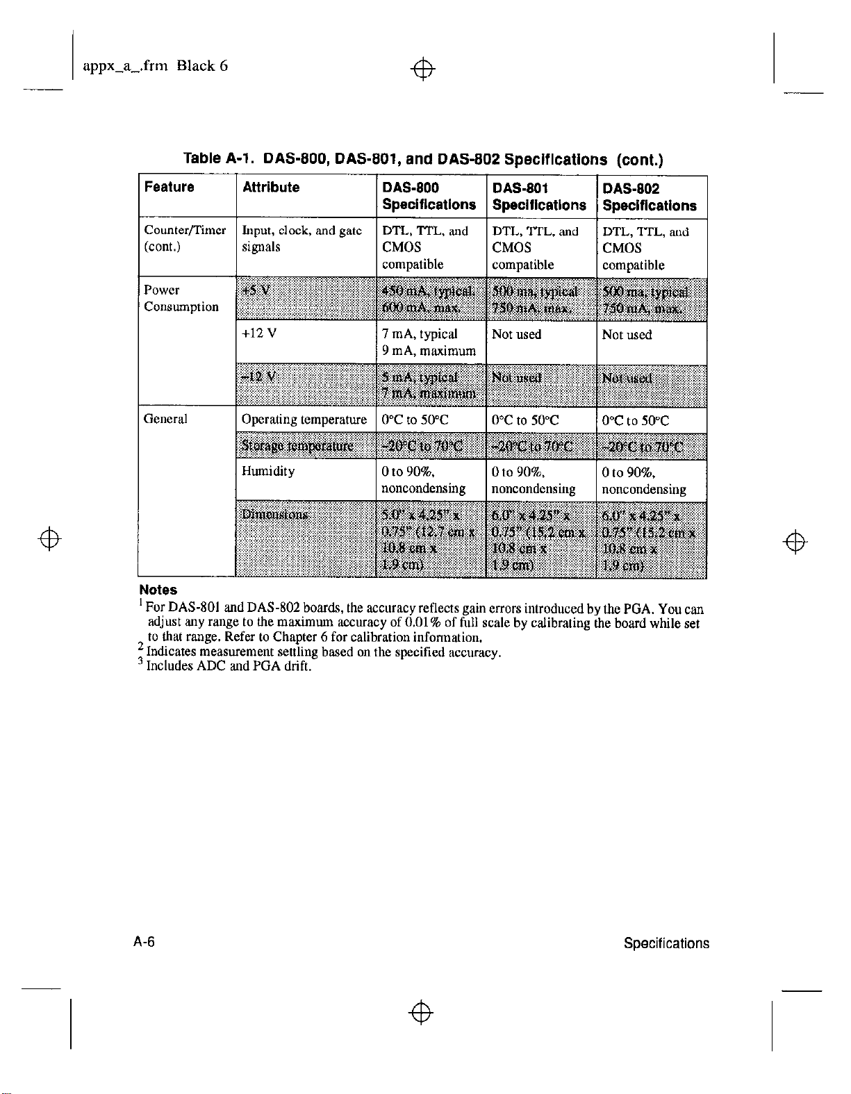 Table A-l. DAS-800, DAS-801, and DA-S-802 Specifications (cont.)