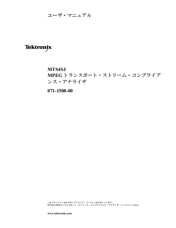 MTS4SJ MPEG トランスポート・ストリーム・コンプライアンス・アナライザユーザ・マニュアル i